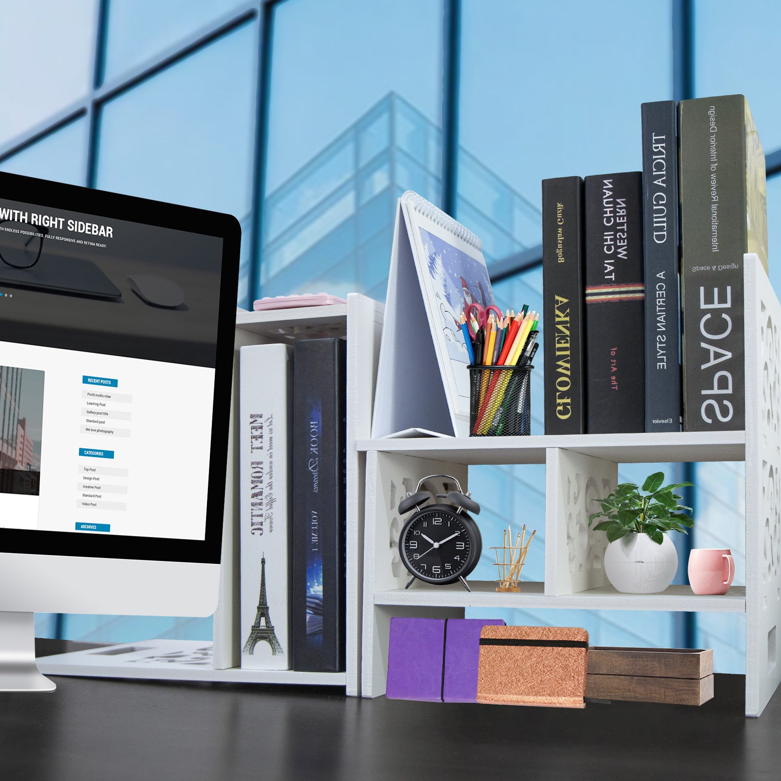 YGYQZ Office Desk Shelf Organizer and Accessories - Desktop Supplies Cute Dresser Top Adjustable Organization Storage Rack and Cubicle Decor Aesthetic Bookshelf for Women Man and Kids